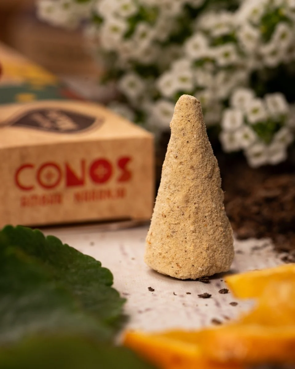Un sahumerio natural en formato de cono, elaborado artesanalmente por Sagrada Madre en Argentina. La unión del ámbar y la naranja crea un humo cálido y revitalizante, ideal para atraer prosperidad, alegría y protección espiritual.